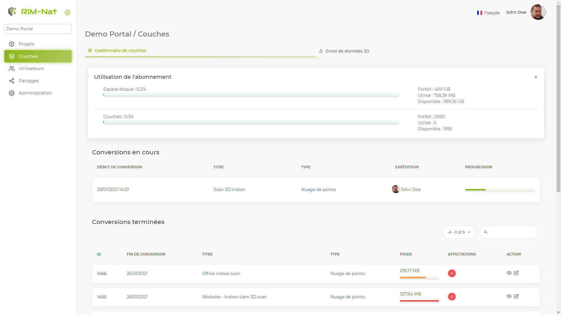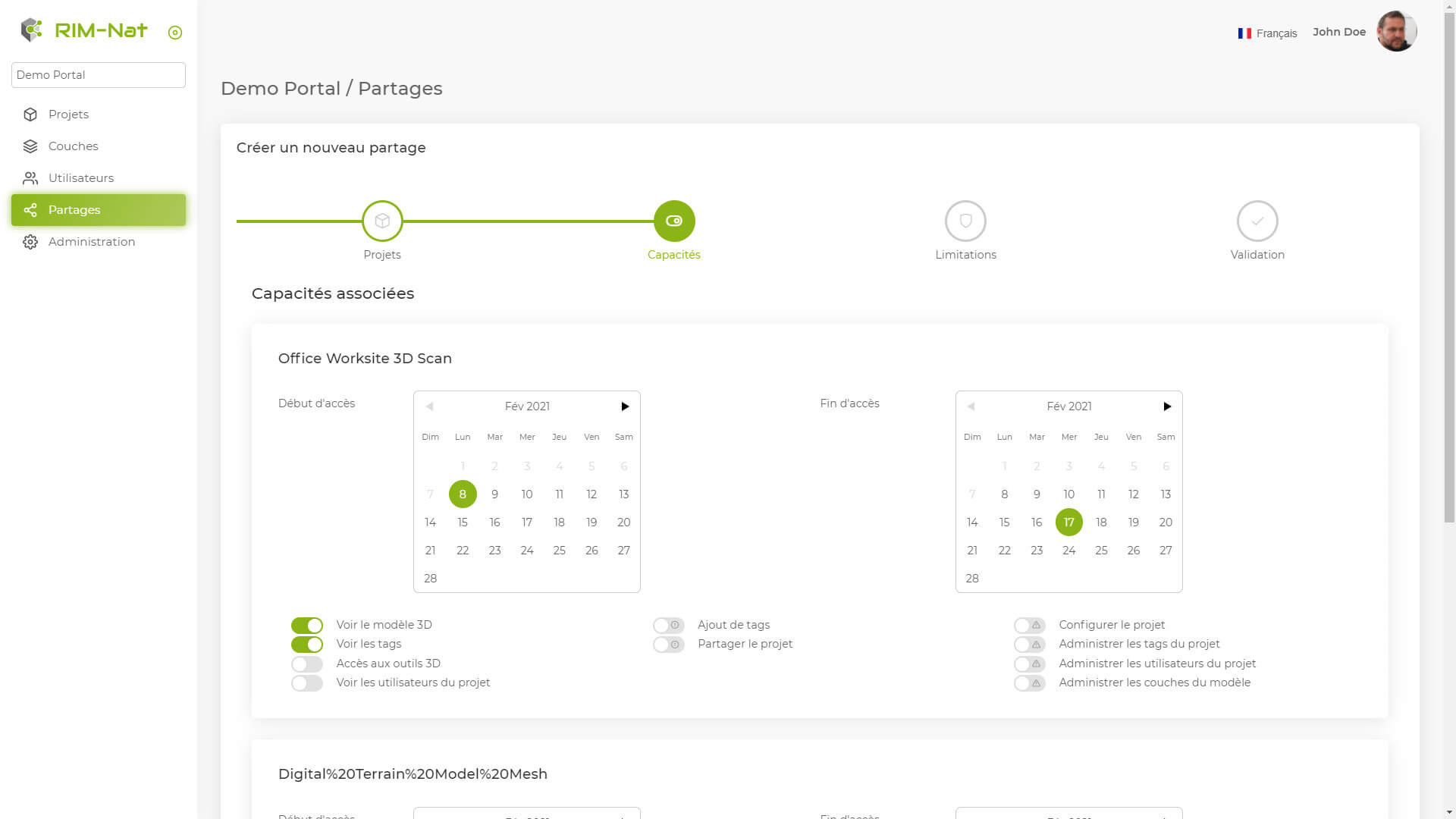 Administrez simplement vos projets avec une grande modularité. Affectez vos couches de données, ajoutez des utilisateurs et collaborez en mode BIM. Partagez et exportez votre travail.