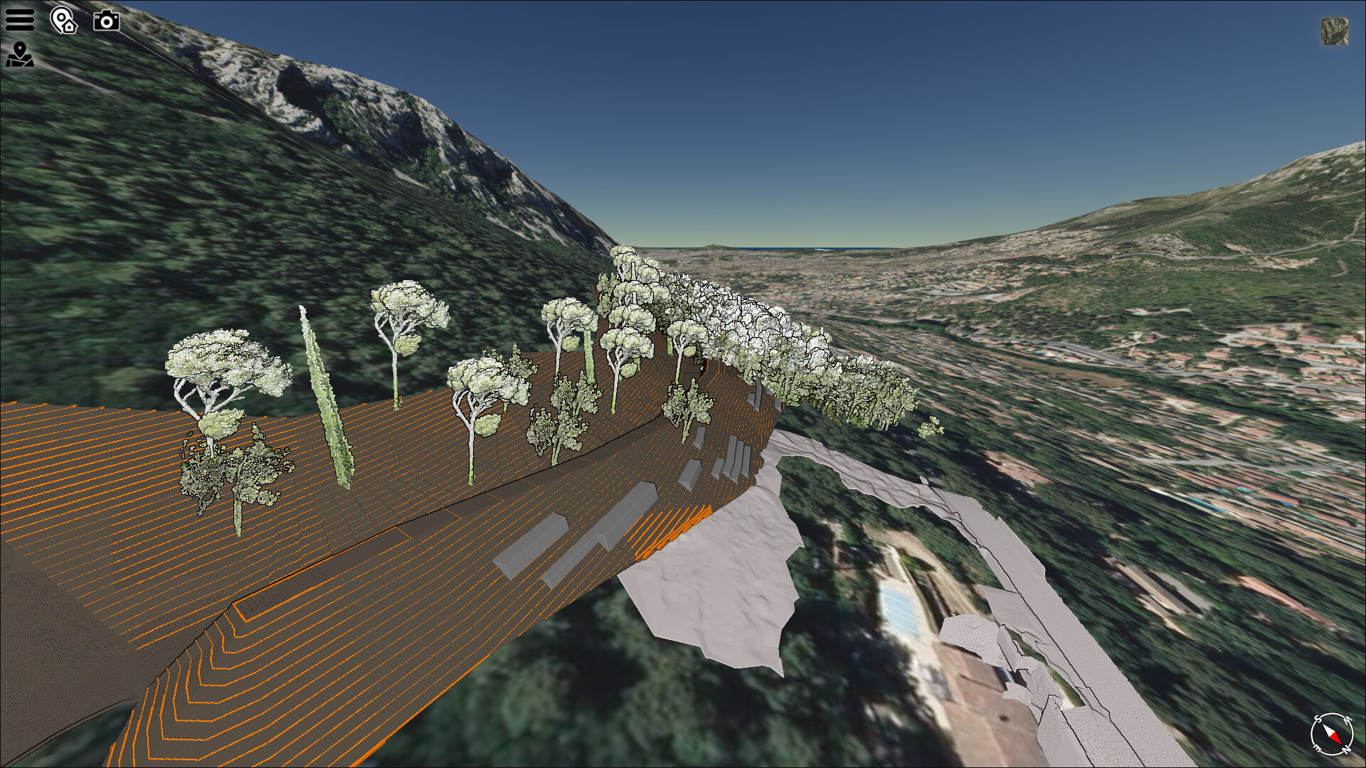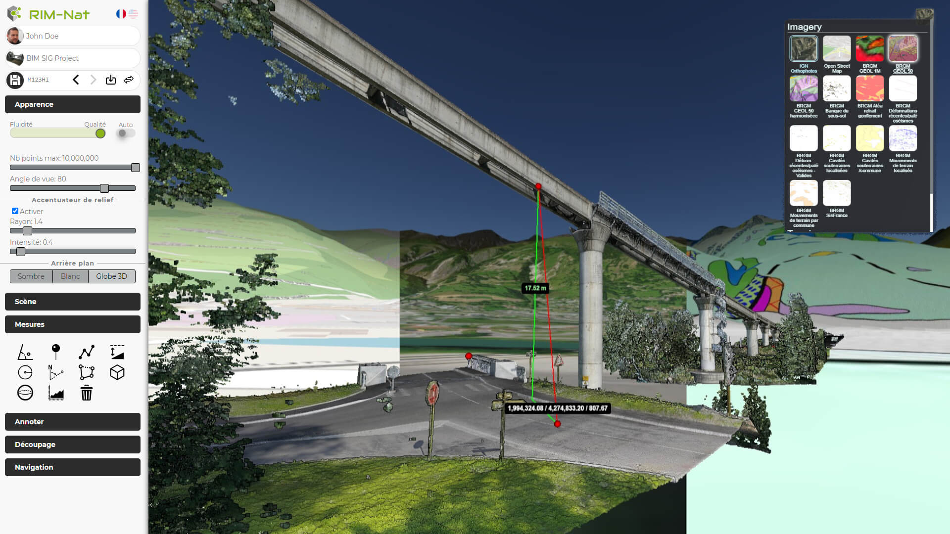 Géopositionnez vos maquettes BIM, modèles d’infrastructures et données territoriales SIG sur un terrain global 3D intégrant une bibliothèque des données géospatiales mondiales.